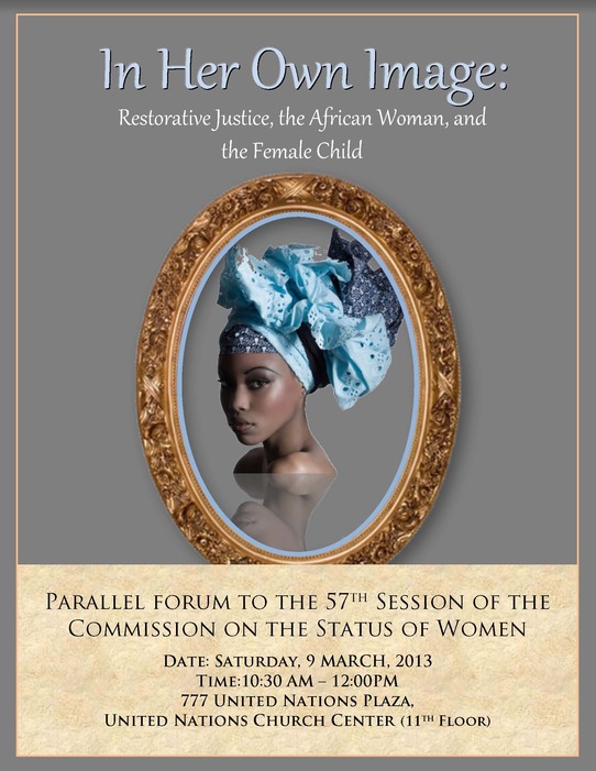 Dans sa propre image est un forum qui abordera spécifiques à la région inquiétudes concernant la violence contre les femmes au Nigeria, la Guinee, la Mauritanie, le Tchad et les Etats-Unis. Les panélistes discuteront des causes et des approches pratiques de la justice réparatrice, qui comprennent les perspectives des femmes qui sont sur les lignes de front du développement.