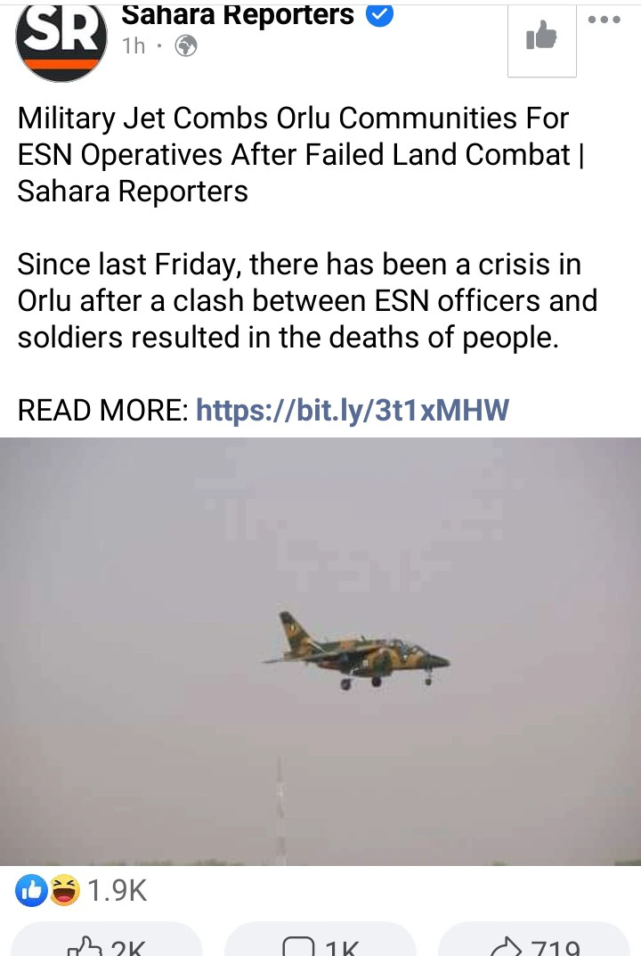 By UdumaPraise | Opera News NigeriaPublished 53 minutes ago - 0 viewsThey have been unrest and riot both in South West and in Orlu, Imo State. Since last week the people of Yoruba decided to say enough is enough to the killing, raping, and insecurity in their lane. According to the Yorubas, the Fulani Herdsmen have caused a lot of havoc, abomination, molesting, raping, and insecurity in their land is high time the leave.The Yoruba Activist and leader, Sunday Adeyemo, popularly known as Sunday Igboho called all the Yorubas together as they declared enough to the insecurity in their Land. They made it known that they can no longer accommodate the Fulani Herdsmen in their land and demanded they should leave.This has caused a big clash between the Yorubas and the Fulani Herdsmen. Still the same week it was heard that great havoc and unrest is going on in Orlu, a part of Imo State.It was revealed that the Nigerian Army invaded the military basement of the IPOB Eastern Security Network (ESN) and it ended up in a gunfight. It was reported that the IPOB ESN pursued the Nigerian miliary Soldier. Some of the soldiers even ran for their lives as they were beaten by the ESN.It was also reported that about 3 soldiers were killed and many civilians also died. Many people who saw the video of Army men running even laughed over it.Now it was reported by Sahara reporters that yesterday and today a military aircraft was located in Orlu hovering around to locate and engage the Eastern Security Network operatives in a fight. It was reported that the Aircraft caught the attention of the residents who became so afraid of what might happen next.It was reported that the Aircraft was parading in the air for about 30 minutes.