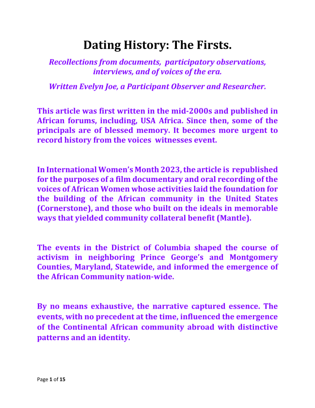 | Dear Readers, for all practical purposes, from time through 1970s, the African Community abroad in the United States, Europe, and elsewhere was a predominantly student population. Members were few in college campuses and largely kept to their own tight-knit circles in the community. Most, on government scholarships, returned to serve their countries. In the 1960, the Kennedy administration brought hundreds of African students to America for higher education, including Barack Obama Sr., the father of former President Obama. Known as the "Kennedy Airlift," the generation marked a new and steady pattern of African migration. The original posting received impressive feedback on this groundbreaking project. Philanthropists, like Dr. Ibrahim Fofanah (Sierra Leonian), in the heyday, were located after almost 25 years. Mamadi Diagne (Guinean) of Amex, DC relocated to work with Ivorian President Alassane Quattara as his Foreign Policy Adviser. Unfortunately, Mamadi died in August 2022. Dr. Sulayman Nyang (Gambian), the former Dean of African Studies, Howard University, who coined the descriptor "Continental Africans" to identify African immigrants and descendants of African immigrants in the Diaspora, died in November 2018. The community lost a fountain of knowledge. The narrative, first published in mid 2000, does not include the information. Mayor Marion Barry is no longer with us. But there is Ayo Bryant, the then Director of the catalytic DC Commission on African and Caribbean Affairs established by District of Columbia Bill 95-166. It was signed by Mayor Marion Barry on September 12, 1995. If you know anyone, dead or alive, noted in the NARRATIVE, please reach out. Please send evidence of development at the time, as they occurred in context of Continental African ownership of, and influencing, narratives in public space. Either there are eyewitnesses or a document. It is important. This is an example. By the mid-1990s, civil society actors were in the foreign affairs space. https://washingtontimes.newsbank.com/doc/news/0EB0F2C0B70AAA94?search_terms Evelyn Joe's Response to an editorial by Todd Pitcock on Nelson Madela calling Muamar Gaddafi "Dear Brother." Ms Joe changed of headline to: Mandela Refuses to Pander to Western Politics: Published in Washington Times. https://washingtontimes.newsbank.com/doc/news/0EB0F2C0B6A1D7E1?search_terms |