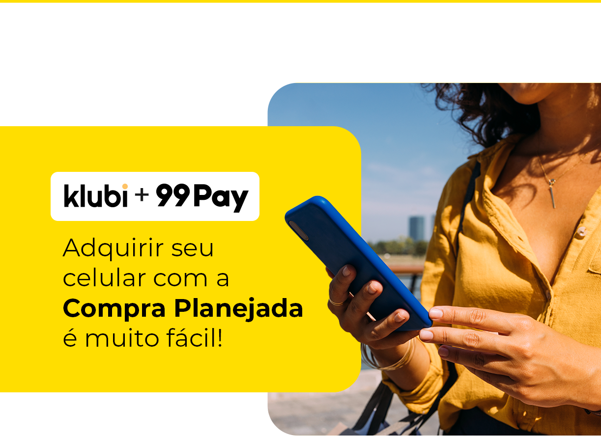 A 99Pay e o Klubi se uniram em uma parceria cheia de benefícios exclusivos pra quem usa a 99Pay. Com a Compra Planejada de Celular, do Klubi, você consegue adquirir seu celular novo com muito mais facilidade!